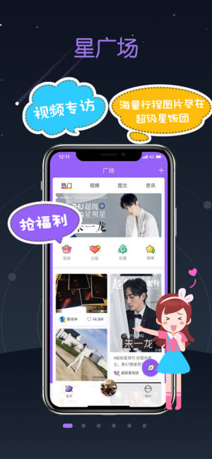 超级星饭团是一款专为粉丝打造的粉丝追星服务平台,让粉丝轻轻松松即时了解爱豆微博、Instagram、Facebook、Twitter等社交动态信息,随时随地紧紧守护自己的超级明星。 — 特色功能 — 1. 明星动态:明星微博、Instagram、Facebook、Twitter 社交动态即时提醒,抢沙发、抢热门从此不是问题; 2. 饭圈动态:汇集了爱豆的最新最全的动态,不错过爱豆每一个精彩瞬间(如果饭圈动态还未开通,可以让后援会微博联系我们); 3. 明星行程:明星行程踪迹一目了然,更有明星行程图集,聚合明星的行程高清图片,让你了解爱豆的每一个大事件; 4. 明星陪伴:粉丝发帖互动社区,…