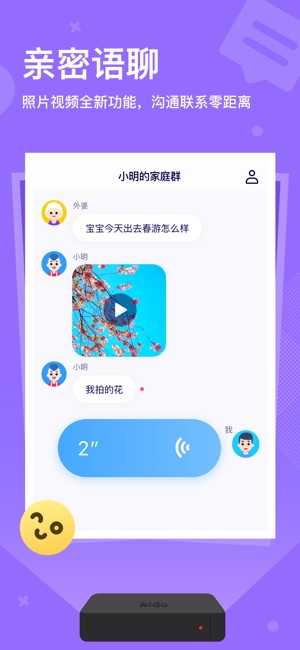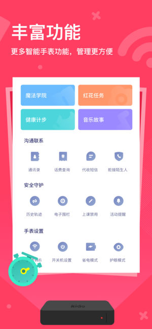 这是一个用来连接Kido Watch 的app,家长使用该App可以激活手表,添加监护人,查看小孩子的位置,活动轨迹,步数,还可以像使用微信语音一样,和小朋友互发语音。更重要的是,我们增加了更多人性化的应用,为小朋友添加任务、管理日程,为小孩子养成良好的时间管理习惯。 k2 APP版本包括以下更新: 1.支持4G全网通、手表话费查询 2.健康计步 可实时获得孩子每天的运动计步数据; 3.红花任务 可设定红花任务与孩子互动,达成奖励,养成孩子好习惯 4.活动提醒 可对手表进行设定:起床睡眠提醒、生日提醒、自定义日程提醒; 5.语聊 支持监护成员与孩子间语音聊天,增添趣味表情包; 6…