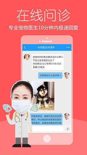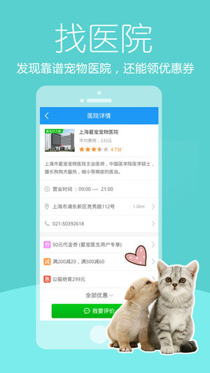 爱宠医生是一款宠物医生在线问诊App,有宠物医院的宠物医生在线咨询,作为宠物的私人医生,我们立志于做宠物界的春雨医生和平安好医生。 养狗、养猫的宠物主人注意啦!宠物生病了去哪儿看病?不用马上去宠物医院,使用爱宠医生APP随时给家中的宠物、狗狗、猫咪问医生,可向周边的宠物医生和全国知名的兽医提问,找到医生咨询,你还可以查询到小区附近的宠物医院、宠物店,查看宠物医院的评论,帮你找到最好、最靠谱的宠物医院和宠物医生。 如果您想了解宠物狗、宠物猫、狗狗、猫咪、小宠、龙猫、养猫、养狗等相关的疾病、药品、病状、体检、饲养、训练、美容、洗澡、剪毛等多方面的宠物养护百科知识,如果你想了解养狗、养猫的日常信…