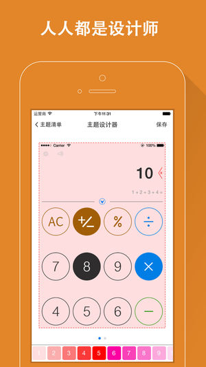 App Store上第一款可以自定义主题的计算器 特色: * 自定义颜色主题,打造自己的个性化主题 * 79种颜色,自定义每个细节 * 给计算记录增加备忘录,想写什么就写什么 * 历史记录清单自适应高度,不管计算过程多长都能完整显示 * 历史记录可通过邮件分享 * 操作简单、快速 支持操作: • 基本计算功能 (+, -, ×, ÷, %, 正/负) • 退格删除按钮 • 查看和编辑历史计算结果 • 可控制是否播放按键音 现在就下载,感受这个计算器是如何精典的