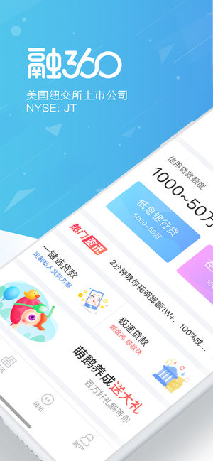 为什么要使用【融360】?下述内容不吹牛。 1. 解决【贷款】难题 特点: - 全面解决:个人消费贷、企业经营贷、车房装修贷、出行旅游贷、学习进修贷、投资理财贷。 - 放款效率:最快仅需一天即可放款。 - 利率优势:月利率仅0.3%起。还款期限3个月起。 - 服务优质:我们深知您的难和急。暖心的服务是我们理应为您真情奉献的。 2. 提供【金融信息】大全 特点: - 金融信息:贷款技巧、经济政策、金融趣谈。 融360|简普科技(www.rong360.com)成立于2011年10月, 是中国最大的、独立开放的金融产品搜索和推荐平台。以“让金融更简单,成为每个人的金融伙伴”为使命与愿景。20…
