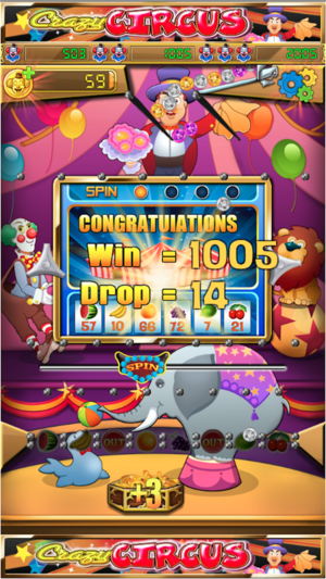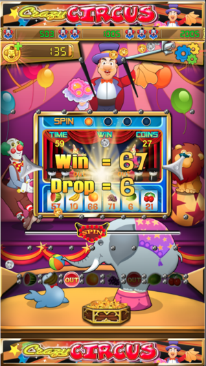 "疯狂马戏团"小丑机游戏是时下电玩城、游戏厅里的一款大型游戏。非常受玩家欢迎! 有趣的马戏团,滑稽的音乐,精彩的动画,简单的游戏。来这舒缓一下你的心情! 游戏介绍 : 1、点击屏幕,游戏币会由上方摆动器的位置掉出. 2、使游戏币砸到移动的“SPIN”,启动三幅摇奖图 3、连线奖:从左至右,2个相同水果,获得相应的分。 4、转盘奖:3个相同水果,打转盘(砸SPIN,给您相应的转盘分)。 5、特别奖:2个相同水果+小丑,打帽子(累计水果的得分,直到OUT为止)。 6、小丑奖:从左至右,1个小丑,获得1丑分数;2个小丑,获得2丑分数;3个小丑,获得3丑分数。 7、砸到亮灯的水果,该水…