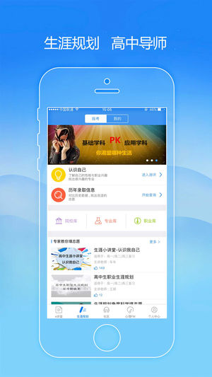 介绍 升学e网通是为高中生全面发展而服务的互联网产品,为高中生提供在线名师辅导、心态调节、心灵成长、升学报考、生涯规划、社区交流等一站式解决方案,用互联网教育促进高中生更全面发展。 功能说明 • 精品课程—10000节精品课程,高考考点全覆盖。支持在线观看和离线下载。 • 生涯规划—高中三年巧规划,一步领先 步步领先。通过测评系统准确了解自己,再结合科学的填报方法和数据分析,轻松把控自己的生涯规划。 • 心灵成长—暖心的心理FM,心理困惑,有我相伴。 • E社区—聊天娱乐,学习分享,励志加油……高中生的网上家园。 • 用户反馈—有问题和建议尽情来吐槽吧。 • 电话客服:4000-…