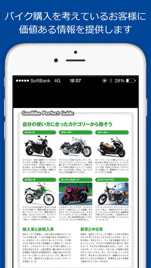 日本最大級のバイク検索サービス、Gooバイクが提供するBike専門の電子書籍アプリ! ■GooBike Booksとは 「バイクを買いたい人」のためのバイヤーズガイド。新車紹介やインプレッション情報、メンテナンス情報など、既にバイクを持っている人にも使える情報が満載です。 ホンダ/ヤマハ/カワサキ/スズキ/ドゥカティ/ハーレーダビッドソン/ベスパ/ピアジオ/テラモーターズなどの人気メーカーについての特集や、CB400/SR400/ゼファー/スティード/ドラッグスター/フォルツァ/マジェスティなどの人気車種にスポットを当てた特集や、ネイキッド/レプリカ/オフロード/ツアラー/アメリカン/ビッ…