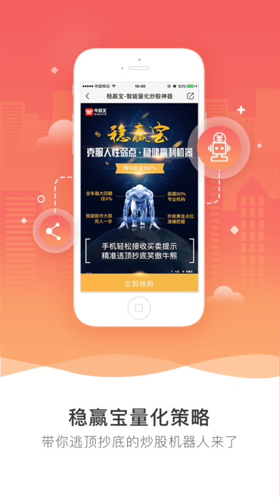 牛股王——跟牛人,选牛股。 高收益牛人追踪, 海量干货课程。 覆盖A股/港美股,超低佣金交易。 ——————牛股王功能亮点—————— 【炒股上手快】稳健股票投资组合参考,精准把握股票、基金交易机会; 【基金收益稳】多种基金组合收益稳健,闲置资金放入现金宝每天都有收益; 【低佣金开户】一键开户,万2.5全网最低佣金; 【港美股交易】线上港美股开户交易,全球资产布局; 【云端帮盯盘】云端智能盯盘股市,实时提醒个股异动; 【炒股牛人多】操盘手收益综合排行榜,大数据挖掘靠谱炒股牛人; 【股票行情全】A股、港股、美股、新三板行情数据; 【操盘手交流】牛人云集的股票投资交流,对话牛人操盘手零距离; 【炒股票赚钱】百万股票资金模拟炒股,实盘炒股开户交易赚钱。 —————典型用户的使用评价————— 股市新人: “牛股王提供百万资金模拟炒股,还能免费查看牛人操盘记录,随时和牛人交流互动,名副其实的炒股利器” ——by 涨停小王子 “股市牛人交易实时推送,手把手带我轻松入门炒股赚钱;在线实盘开户佣金很低,每天都用牛股王盯盘和交易。” ——by 橡皮来了 老股民: “这里有投资交流互动圈,与各类牛人对话交流选股心得,不管大盘如何震荡,都能让小散精准找到交易机会。” ——by 石晓生 “每天必看热点概念、热门板块、各类涨幅榜单,追踪股票、基金、期货市场的新闻资讯热点,这里有牛人、高手实时买卖股票信息,轻松选股,赚钱翻倍!” ——by 短线我最强 操盘手牛人: “牛股王以业绩论英雄,大数据筛选出了稳健牛人、常胜牛人、人气牛人、最赚钱牛人、飙升牛人、短线牛人,人人有机会成为社区热门投资大咖。” ——by Guoshu “参加炒股大赛,和高手过招,还有千万粉关注跟随,让我的炒股之路充满乐趣,牛股王不愧为股票APP中的神器。” ——by 六神sixgod —————牛股王,免费找牛股————— 1、 股市行情:A股、沪深、沪市、深市、港股、美股、新三板、道琼斯指数、恒生指数、港股开户、美股开户。 2、跟牛人买:牛人、持仓、跟买、涨停、跌停、长线、短线、炒股公开课,补仓,买入卖出时机,清仓。 3、智能盯盘:股票盯盘系统、智能预警系统、个股异动提醒。 4、股票软件:股票入门、炒股软件、炒股入门、股票模拟,模拟炒股,炒股神器、炒股模拟盘、炒股游戏。 5、新闻资讯:股票资讯、财经新闻头条。 6、股票社区:投资社区、赚钱、抢红包、福彩体彩、彩票、手机赚钱。 7、基金期货:基金推荐、基金行情。 8、股票开户:A股开户、沪市开户、深市开户、港股开户、美股开户、新三板开户。 9、券商资讯:海通证券、恒泰证券、新时代证券。 告别付费内参时代,7x24小时股票社区,海量股票股市新闻资讯,一个不落及时免费送达,一切尽在掌握! 对于产品如有任何疑问和建议,请与我们联系 网站:http://www.niuguwang.com 客服QQ:4006255268 新浪微博:http://weibo.com/niuguwangguanfang 客服电话:400-625-5268