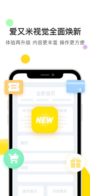 爱又米,是爱财集团旗下年轻人安全可靠的消费金融平台,旨在为用户提供快捷、安全的金融服务。爱又米携手中国银行等金融巨头,不断完善金融业务链,成为传统金融背后坚定的金融科技力量,率先联合持牌消费金融机构共同深耕年轻人消费金融市场,用安全可靠的消费金融服务打穿年轻人线上购物、教育培训、休闲娱乐及就业创业等全消费场景,陪伴年轻人成长。 【特色产品】 嗨花:年轻不留白,50000额度助力就业创业! 取点花:年轻不等待, 送你3000元梦想免息基金! 正品商城:iPhone XS 最高享12期免息,直降千元! 【联系我们】 客服电话:400-867-1888 微信订阅号:爱又米