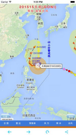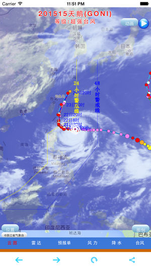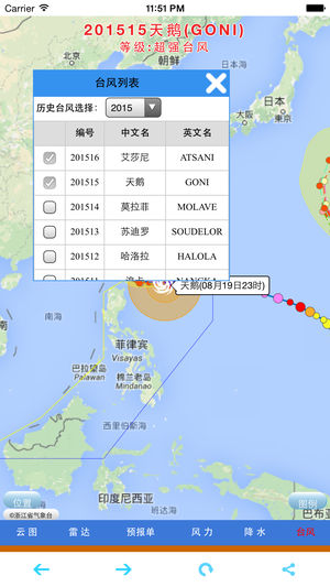 浙江省气象局自主研发的浙江台风信息实时发布系统可实时、便捷地获取有关台风信息。该系统包括台风实况、台风实时路径和各权威气象机构包括浙江省气象台发布的预报路径,同时可叠加显示卫星云图、雷达回波图。全省风力和降雨实况排名情况也可在系统中查询。 该系统还可以显示浙江省气象台发布的台风报告单,报告单中有更为详细的台风实况和风雨实况信息、路径预报、风雨预报以及防御重点建议等。