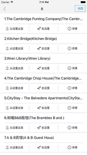 剑桥中文离线地图是一款支持中文地名和酒店标注的地图。所有数据全部打包在应用中,在离线环境在完全可用,是去剑桥旅游的必备工具。 主要特征包括: 1 地图数据完全离线 2 酒店全部中文标注,并提供酒店详细描述 3 部分重要地点中文标注 4 支持酒店查询,快速在地图上定位 5 支持景点、购物、美食、活动等信息在地图上的展示,并提供列表视图快速浏览 6 支持附近酒店、景点、购物、美食、活动的查询 7 支持离线路径规划