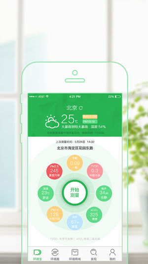 1.搭配环境宝空气检测仪,可实时监测室内甲醛、TVOC化学污染物、PM2.5、PM10、噪音、温湿度、eCO₂八项关键环境指标,环境数据实时预警告知、历史环境数据查询。 2.随时随地查看消费场所(健身房、亲子乐园、电影院、酒店、咖啡厅等)空气质量,及时提醒您做好防护措施。 3.实时定位,根据所在位置显示最近监测点的监测数据,为出行做准备。 【联系方式】 官方微博:720健康管家 官方微信:health720 特别提示: 本App需要配合720环境宝Plus和环境宝3代智能硬件使用。 本App支持iOS9.0以上系统。 本App支持iphone5以上手机。