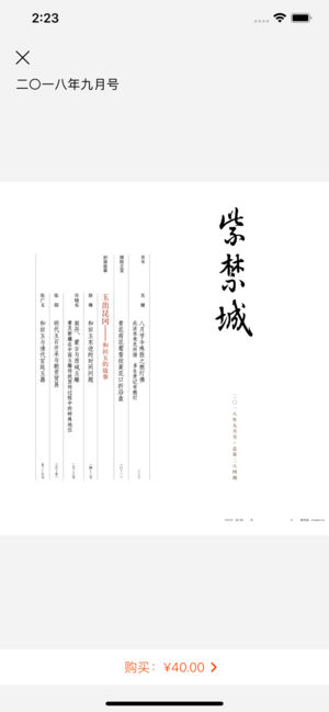 《紫禁城》创刊于一九八零年,是由中华人民共和国文化部主管、故宫博物院主办、故宫出版社出版的文化艺术类期刊。利用故宫博物院得天独厚的文物与专家资源,依托故宫一百八十万件文物藏品和明清紫禁城的皇家建筑群,关注学术发展前沿,热心引导和鼓励青年学者成长,注重保护和传承老一辈学者的研究成果。坚持传统文化的公益宣传,以专业而不呆板、严谨又不失雅致的文字,高质量的图片,让广大读者在看到故宫博物院的发展的同时,获得研究资料和文化给养,感知到以故宫为代表的中国经典文化的博大精深。为了更好的为广大读者服务,响应国家的"互联网+"文化产业策略。 故宫出版社与北京华星成汇文化发展有限公司携手发行《紫禁城》电子杂志A…