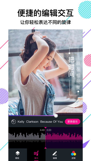 电子相册,幻灯片播放照片很无聊吧!现在让VCore美册音乐相册来帮你实现独特的照片放映体验。 VCore美册音乐相册通过自动识别图片中的重要部位以及可视化的音乐编辑,帮你制作出精彩的视频MV音乐相册 (MP4格式), 只需一键操作,短短十几秒便可完成相册制作。 美册音乐相册是一种新的媒体形式,将图片、音乐、视频以及优美的文字制作成一段视频故事,定制属于自己的电子相册! 每个镜头进行了独特的设计, 每个主题动效(美册音乐相册不是固定的模版) 都会给您带来不一样的视觉体验,让相册制作过程成为一种记录的快乐。 视频MV的每一个片段你都能便捷的编辑,美化和定义;可视化你每…