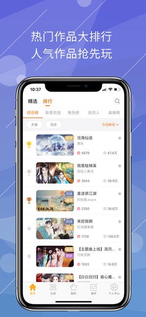 【应用简介】 你还用传统的方式看小说,盯着密密麻麻的枯燥文字阅读? 橙光------颠覆你想象的互动式阅读类应用。 比小说更有剧情感,比漫画图更唯美精致,比游戏更好玩~~~ 在这里,穿插剧情中的各式互动玩法,玩着玩着,竟有身临其境的感觉! 在这里,可通过不同的选项来决定剧情发展,和谁组CP?和谁么么哒?一切由你说了算! 在这里,人人都可参与创作,都有成为作者大大的潜质,快来分享你的精彩故事吧! 超全原创精品,总有符合你口味的那一款,还不快来橙光附体! 【橙光特色】 1、超多福利可享 站内有大量作品均可免费畅玩,首次下载橙光APP的新用户可免费领取试玩券7张,更有活跃度奖励精选作品免费…