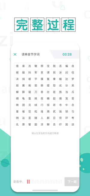 1.丰富的普通话考试素材: 内涵《普通话水平测试》6595个词语,60篇朗读,30篇命题说话范文,附带标准音频,更有各等级示范读音与模拟考试测试题。不再怕读不准拼音字母表、普通话发音,拿一甲就是可以这么简单! 2.专业的发音评分功能 软件采用与全国普通话水平测试相同发音评分技术,对普通话进行发音评分,精确找出错误读音。针对性纠正,有效提高普通话水平。 3.全新普通话发音社区 打造普通话学习社区,用户可以将自己的发音录制并发送到社区,让千万普通话学习用户互相评分,分享学习心得,提高学习效率。 4.创新的普通话测试发音教学 对声韵母发音采取 口型图+文字+发音对比 的方式,更有平翘舌、前后鼻…