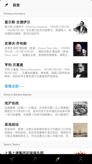 Inquire by Tamper (formerly Curiosity by Tamper) 是发现和了解周边世界最简便的方式。利用所在位置、趋势主题及其他策划栏目,Inquire 可以利用维基百科收集的丰富可靠的信息,为您提供最有趣的相关文章。 • 利用“附近”功能,可以探索发现隐藏在周边环境中的事实数据和信息,也可以探索全球各地的任何地方。 • “流行”功能可向您展示在指定的日期、星期或月份世人在阅读什么,在最恰当的时候为您提供有趣的文章。 • “探索”功能可显示人工挑选的各种类别的文章;这些类别与各种因素(如时间、地点和当前事件)相适应。您可以了解著名的发明家、附近拍摄的电影…