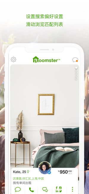 全世界越来越多人选择居住在一起,我们认为分享一个空间将会成为美好的生活体验以及赚钱和省钱的极佳方式,因此我们都能过的更好。 成立于2003年9月,总部位于纽约市,Roomster致力于使共享一个家的经历更容易和安全。Roomster是值得信赖的品牌帮助人们发布房屋出租信息和搜索室友,还能让志同道合的人一起出租房间。Roomster 向人们提供在192个国家不同需求的服务。 » 使用Facebook登入以创建个人资料并更新室友偏好设置 » 根据个人兴趣和生活喜好寻找室友 » Roomster的程序信息功能使你与未来室友的聊天变得安全和简单 » Roomster帮助寻找室友的人们发布近期的房屋…