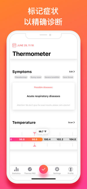 •照顾你的家人的健康标记温度和症状变化。 •创建每个家庭成员的简介文件,并跟踪他们的健康状况。 •有用的疾病史和图形让你注意健康动态。 症状数据: •使用方便的温度计记录每个家庭成员的每日温度并保存这些数据 图表和曲线图: •观察一天或一周的温度起伏图 •检查疾病开始发展的确切时间 健康提示: •使用一系列的健康提示,遵循这些建议,以保持良好的健康,并保持你的体温正常 免责声明:不要使用这个应用程序来确定你的诊断,所有的技巧都只是建议!