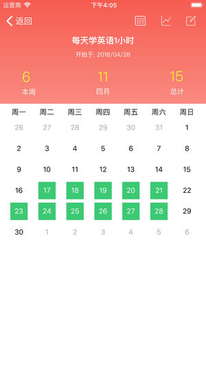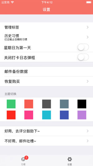 产品设计初衷: 提供最简洁、最好用的习惯养成和记录工具,用完即走。 产品的特点: 无社交,无需登录,无需打卡,免费版无个数限制。 主要功能介绍: 1、3种习惯数据的呈现方式:周、月、年。 2、可添加打卡日志,记录整个习惯养成的心路历程。 3、支持邮件备份和恢复数据 4、预防审美疲劳:支持切换应用皮肤 5、更多功能,欢迎下载体验^_^ 若有问题请联系QQ:3049638357