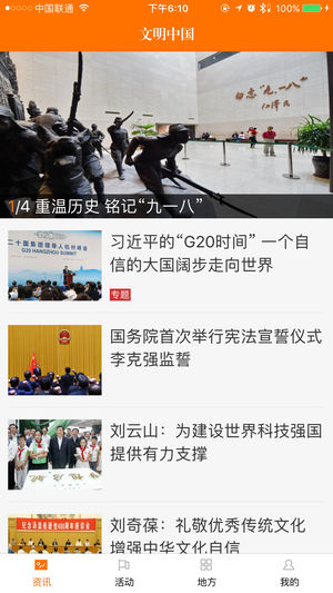 文明中国客户端是移动互联网正能量的集散地,有全国200多个省市县开展的网上活动,汇聚你最关心的好人和离你最近的好事,让你活得更精彩。 应用介绍: 集信息发布、活动组织、宣传推介、评选投票、网上调查、应用支持等功能于一体,社会主义核心价值观的手机端宣传平台,最广泛的网上群众性精神文明创建活动阵地。