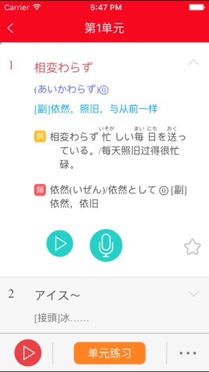备考日语能力考试,正版应用助您轻松突破。《红宝书·新日本语能力考试N2文字词汇(详解+练习)》2011年3月第1版,手机版与2015年3月修订版同步。 新世界图书事业部组织日语教学领域专家学者倾力编著,日语能力考试应考好帮手。按新日语能力考试指南和真题编写,根据作者多年辅导能力考试的经验,对N2文字词汇按五十音图排序,以日文汉字为基础词条编写,标注声调、常用释义、历年真题中文字词汇例句等,方便学习者对应该掌握的词汇进行整体理解和掌握。本应用按20个单元分配,设置了相应的模拟练习题。 海笛携手华东理工大学出版社权威正版发布,具有便捷的学习功能,还有真人发音和云收藏等辅助学习功能。选择正版软件,学…