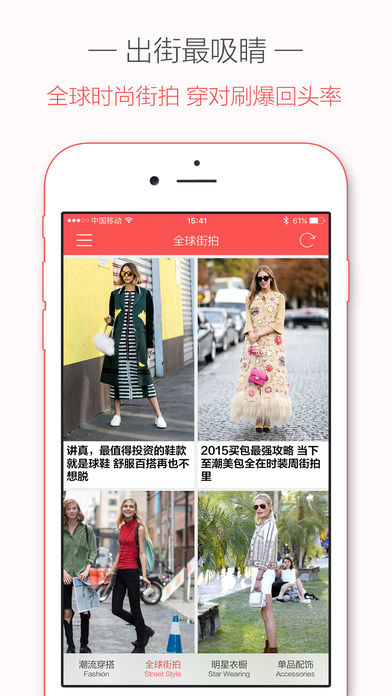 穿衣搭配,爱美女生必备的时尚穿搭App,从此不再发愁穿什么,怎么搭。 还不了解今年秋冬季流行什么吗?还不知道怎么穿显高显瘦吗?有了穿衣搭配,通通不是问题。掌握最新时尚的穿搭技巧,入手最夯单品配饰,穿出明星范儿,出街刷爆回头率,下一个时装达人就是你! ***产品特色*** 四大分类:潮流穿搭、全球街拍、明星衣橱、单品配饰,你想要的时尚资讯全在这里。 时尚界面:光看图就很爽的画报级界面,国内外最时尚的全身穿搭大图,忍不住截屏。 点赞收藏:感到有用你就点点赞,推荐给大家;适合自己就果断收藏,不怕找不到。 ***当季热点*** 小个儿女神显高穿衣有绝招 教你围巾系法11招 围出花式时髦又保暖 这个秋冬你不能错过的5个保持时髦的技能 天冷继续当甜美小公举 连衣裙搭外套时髦整条街 秋冬的性感秘诀 一双过膝长靴还能穿出傲人身材