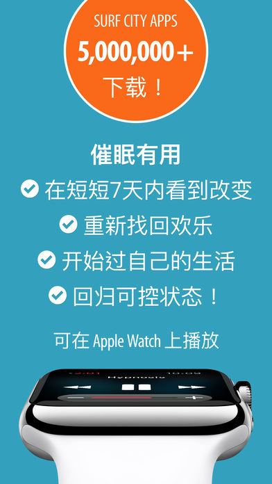 ◉ 向自己承诺去做那个自己一直想要成为的充满爱的爱侣,并在您的爱侣到来之时行动起来 ◉ 催眠有助于改变您的整套思维,让您放下所有的孤独、失望或不配拥有的感受,真正地去爱和被爱 ◉ 收获您一直渴望的令人愉悦的深爱 轻松改变 ◎ 每天收听一段 30 分钟的音频对话,在短短 1–3 个星期内看到成果 ◎ 平和的背景音乐和自然声音有助于放松 ◎ Hypnotic Booster 可将您的脑电波频率引导至准备接收催眠暗示的最佳状态 ◎ 语音、背景声音和 Hypnotic Booster 有各自的音量控制开关 ◎ 在睡前收听时可禁用“结束时唤醒”功能,便于进入放松的宁静睡眠 ◎ 在睡眠时重复对话或循环播放 ◎ 在对话结束后继续收听背景声音 ◎ 可在 Apple Watch 上播放! 可使用“现在播放”滑块在手腕上进行暂停、继续和调整整体音量等操作 与我们互动 Surf City Apps 制作各种提供催眠益处的健康和健身应用。 告诉我们您如何利用我们的应用来改善生活: http://cn.surfcityapps.com 联系支持 http://support-cn.surfcityapps.com 条款与条件 http://cn.surfcityapps.com/terms