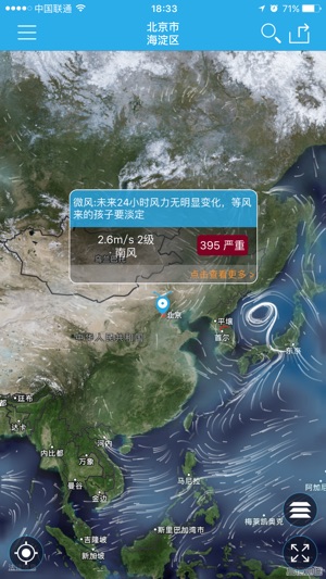 “蓝PI·等风”让您知道风什么时候来,了解这样的风能不能驱散雾霾,“霾”怨没用,等风! 【产品介绍】 “蓝PI·等风”是一款基于风的可视化预报服务产品。采用先进的前端展示技术和细腻的动画模拟全球风场,实时动态展示全球大气运动状态,给用户以生动直观的视觉体验!它会告诉用户当前的风速预报、空气质量、污染物扩散条件等。数据来源权威、连续、准确,拥有全球风场数据。 【功能特色】 1.全球风场动态演示:运用流线表达风的强度及运动轨迹,将风速、风向矢量化、图形化,动态模拟风场变化,实时展示全球大气运动状态。 2.不同高度风速展示:展示200hPa、500hPa和1000hPa不同高度风场。 3.风速…