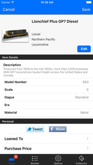 ** Also look for our apps on the iPad! ** Quickly catalog, filter, sort, and manage all of the model trains you own. View information, images, and add personal details. Type, year, edition, country, and more! Here are just a handful of the features you get with this app: - Create a free account…