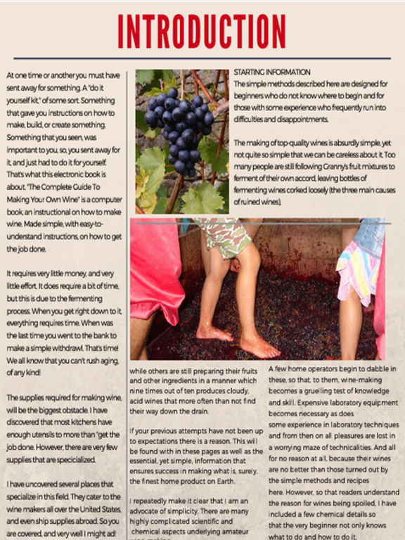 Wine Making For Beginners Magazine If you love wineyou’ll want to read our Magazine Wine Making For Beginners Every month we release new content all dedicated to the art of Wine Making, There are also plenty of videos to keep you busy until the next issue and beyond with beautiful pictures and videos to guide you along the way and even a handy abbreviation section and how to guide should you need it. This is a free app with paid content within. The subscription is billed every month until canceled, You will receive one issue of the iRainbowloom Magazine every month (every 30 days) Payment will be charged to iTunes Account at confirmation of purchase The price of the subscription is $1.99 a month billed (every 30 days) until canceled. Subscription automatically renews unless auto-renew is turned off at least 24-hours before the end of the current period The auto renewable subscription means that the subscription will automatically renew unless canceled. Subscriptions are also available within the application. A subscription will start from the next released issue. Subscriptions may be managed by the user and auto-renewal may be turned off by going to the user's Account Settings after purchase Available subscriptions are: Free Trial For 7 Days and then $1.99 per month per active subscription The subscription will renew automatically unless cancelled more than 24 hours before the end of the current period. You will be charged for renewal within 24 hours of the end of the current period, for the same duration and at the current subscription rate for the product. You may turn off the auto-renewal of subscriptions through your Account Settings, however you are not able to cancel the current subscription during its active period. Payment will charged to your iTunes account at confirmation of purchase and any unused portion of a free trial period, if offered, will be forfeited when a subscription to that publication is purchased. Subscriptions may be managed by the user and auto-renewal may be turned off by going to the user's Account Settings after purchase Users can register for/ login to account in-app. This will protect their issues in the case of a lost device and allow browsing of purchases on multiple platforms. Existing users can retrieve their purchases by logging into their account. Any unused portion of a free trial period, if offered, will be forfeited when the user purchases a subscription to that publication. No cancellation of the current subscription is allowed during active subscription period We recommend loading the app for the first time in a wi-fi area so that all issue data is retrieved. If your app will not load past the splash page after a first install or an update please delete and reinstall the app from the App Store Help and frequently asked questions be accessed in-app and on AppsZero website If you have any problems at all please do not hesitate to contact us: appszerohelp.zendesk.com You can find our privacy policy here: http://www.AppsZero.com/privacy.html You can find our terms and conditions here: http://www.appszero.com/terms.html