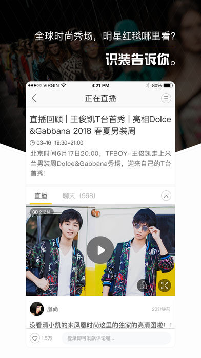 【要时尚,先识装】 识装――基于爱美爱追星爱购物的时尚潮装备社区 一个发现全球潮人时髦装备的时尚助手 一个高端的时尚问答互动社区 一个汇聚万千心水搭配的全球时尚风向标 ●【扒明星同款 识别时尚装备】 “扒”你想知道的所有最热明星私服同款 明星街拍下的私服,通通“扒”在你身上 ●【找影视剧周边 解析主角穿搭】 推荐最热偶像剧男女主角穿搭同款 影视剧同款轻松上身,你就是下一个偶像剧主角 ●【淘国外时尚尖货 推荐潮品购买地】 心爱国外火热私品,却无奈小众难买 为你找到国外正火但国内并未被熟知的品牌单品,在识装你就可以买到! ●【全球GO 发现全球潮人风向】 伦敦、巴黎、纽约、米兰、首尔、东京、北京!!! 全球7大时尚之都潮人街拍,实时传递时髦地标此时此刻流行趋势 ●【明星达人入驻 分享穿搭心得】 明星达人、时尚小编都是你身边的专属造型顾问,明星达人还会亲自与你互动! 每周解答跟他/她相关的穿搭问题,他/她们穿什么?由你来定 ●【视频直播大咖秀 识装任你挑】 明星大咖演唱会、大牌时装秀等出席活动独家幕后花絮、明星贴身私密直播 想知道明星参加活动穿什么?想知道明星私下时尚的一面,贴心识装宝宝为你提前揭晓 ●【时尚问答社区 迅速解决穿搭难题】 问答――可以随时发问你喜欢的明星,达人如何穿 晒货――可以随时发问新买的宝宝,大衣该如何搭 晒照――培养网络红人,晒出自己时尚穿搭照片 在这里“品味率高”,但我们依然很实用,我们很时髦! 联系我们 官方微博:@识装2016 官方微信:识装(shizhuangapp) 客户端:打开应用,点击我-设置,进入我要反馈