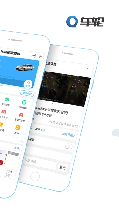 违章查询-车轮违章查询是一款出色的查违章APP,由车轮出品。支持全国400+城市、违章数据同步更新,准确快捷。是车主出行必备汽车违章查询app。 【我们的优势】 【全面】覆盖面广,免费支持全国400+城市! 【准确】违章信息更新及时、快速、准确 【智能】新违章自动提醒,支持全国。每天油价实时更新! 【便捷】输入车辆信息后,自动保存,下次不用再次输入,刷新即可! 【贴心】附近违章高发地,提前预防减少违章! 【实惠】新车报价降价信息一手掌握,二手车评估高价卖车不吃亏! 【友爱】可以帮他人查询,并将违章信息通过微信等多种形式分享! 【交流】爱车违章别郁闷,来社区一起吐吐坑爹地儿(*^__^*) ! 【安全】喝酒不开车,快点找代驾;车险可以有,不要贪省事! 【有趣】签到秒杀领油费,好玩又省钱! 【支持查询城市】 北京违章查询、上海违章查询、天津违章查询、广东违章查询、广州违章查询、深圳违章查询、河北违章查询、石家庄违章查询、山东违章查询、青岛违章查询、浙江违章查询、杭州违章查询、河南违章查询、郑州违章查询、陕西违章查询、西安违章查询、辽宁违章查询、沈阳违章查询、黑龙江违章查询、哈尔滨违章查询、山西违章查询、太原违章查询、四川违章查询、成都违章查询、湖南违章查询、长沙违章查询、湖北违章查询、吉林违章查询、长春违章查询、江苏违章查询、南京违章查询、无锡违章查询、苏州违章查询、福建违章查询、福州违章查询、江西违章查询、南昌违章查询、大连违章查询、重庆违章查询、济南违章查询、内蒙古违章查询、广西违章查询、兰州违章查询、安徽违章查询... ... 【我们的承诺】 车轮违章查询承诺未经你允许绝不向第三方提供你的车辆信息。请你放心使用! 欢迎您通过app设置里的意见反馈发送优化意见给我们。我们会继续努力不断优化产品。给大家提供更好的服务。 【温馨提示】 如果在 iOS 10 下遇到车轮查违章不能加载数据的问题,可以进行下列尝试: 1. 打开 iPhone 的「设置」>「蜂窝移动网络」>「使用无线局域网与蜂窝移动的应用」中尝试更改车轮查违章的联网权限设置 2. 打开 iPhone 的「设置」>「蜂窝移动网络」中打开「无线局域网助理」。再尝试打开车轮查违章(成功后即可关闭) 3. 如果上述方法仍未解决,请重启手机后再次尝试上述方法