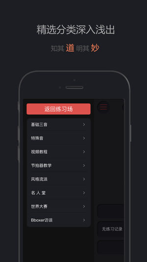 beatbox练习助手 = Bbox教程+Bbox谱子+练习器 + 节拍器。我们是最勤奋的Beatbox习者!这里是一个人的江湖! 本软件适合学习beatbox的新手,侧重beatbox练习,同时,音频教学也比较丰富!视频教学部分是为了便于新手学习单音练习。搜集的视频教学也是为了节省学习者的时间,但本部分不是本软件的主要功能部分。 掌握了bbox的基本技巧后,仿若拥有了随身架子鼓,尽享音乐创作乐趣,通过掌握类似口技的仿生乐器声音,加上dj打碟和一些特殊音产生稳定的基本节拍形成节奏循环,可以形成娴熟的背景节奏音乐,不仅可以自娱自乐,也可以应用于现场mc喊麦,rap说唱,及街舞等的solo配合…