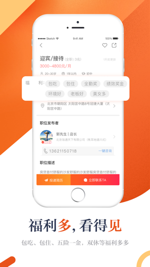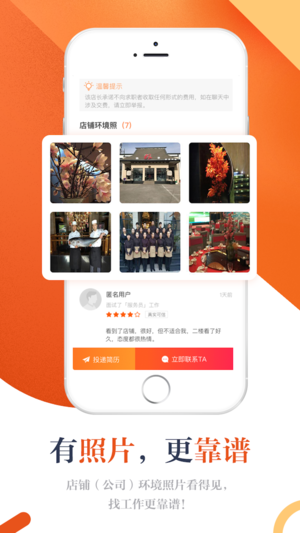 高效招聘找工作神器,每天数十万人在这里找到工作! 在线聊天面试,24小时极速入职! 【店长直聘】是一款专门针对服务业免费招聘/找工作的手机软件,根据定位精确匹配附近的好工作和求职者,获得对方联系方式更快捷,在线聊工作,发面试,入职招人更高效! 【职位真,离家近】严格的职位审核机制保证职位更真实,基于定位推荐附近的职位! 【福利多,看得见】包吃、包住、五险一金,双休等福利多多 【直接聊,入职快】不用赶地铁,赶公交去面试,直接在家聊店长,更便捷! 【连锁店,选择多】西贝、真功夫、新辣道等连锁店应有尽有,选择更多! 【有照片,更靠谱】提供真实的店铺照片,真实透明、更靠谱! 【已覆盖地…
