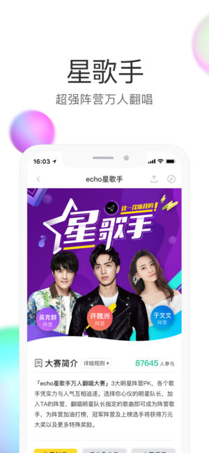 【echo回声】一个用弹幕交流的音乐娱乐平台——开启潮流音乐生活方式。在这里,发现新潮音乐,记录听歌轨迹,结识音乐同好,近千万潮流年轻人邀你一同加入属于我们的新音乐生活。 【echo回声】不仅是中国最大的原创&3D音乐平台,还网罗了全球最时尚的音乐达人。与他们一起聊音乐品味,听全球好音乐;和最爱音乐,最会生活的人做朋友;神奇3D音乐和弹幕评论,变声录音和趣味铃声,专辑收藏和听歌轨迹,echo告诉你不曾了解的音乐多方面。 来了echo回声才发现——全网这么多新潮音乐,这么多和我有共同爱好的人,还有我不知道的音乐新玩法! 【带你找到全网最新潮的好音乐】 3D立体声音(雨声,场景立体特效声)…