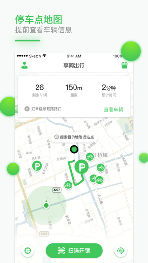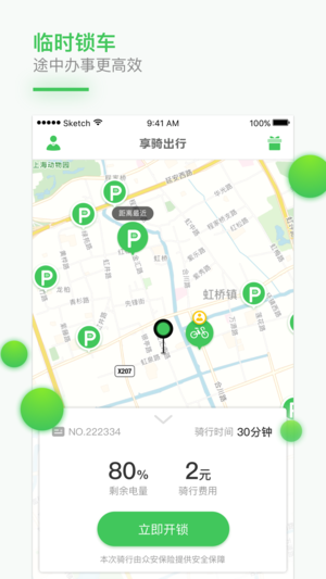 享骑出行致力于电动车分时租赁服务,为用户提供短途出行交通工具,满足用户从地铁站、小区、公交站、超市、商业区、学校等地方出行的便利需求。享骑出行是基于LBS(地理位置)的服务平台,用户可以使用APP即可完成借还车操作,用户到达站点扫描车身二维码点击开锁即可完成借车,随时锁车服务更加满足了用户的灵活出行。