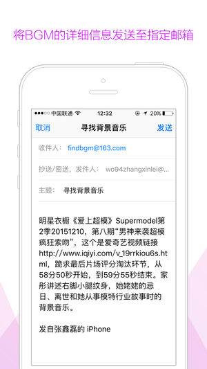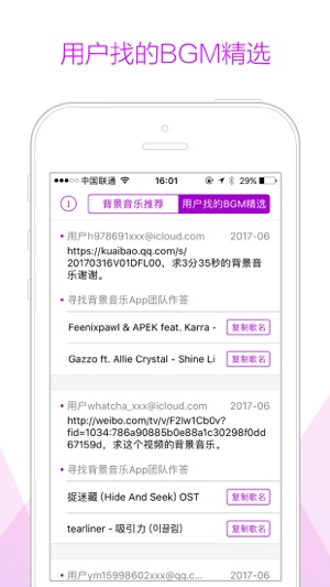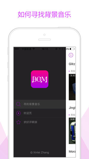 ●《寻找背景音乐》App,是一款帮助用户找到那些在电视剧、电影、动画、电子游戏、网站、公共场合(如酒吧、咖啡厅、商场)中用于调节气氛音乐的App。这种音乐属于配乐的一种,插入于对话之中,能够增强情感的表达,达到一种让观众身历其境的感受。 ●生亦老炮儿,死亦老炮儿。有多少影迷被《老炮儿》最后六爷冲锋的画面所颤动,又有多少影迷被这时候响起的背景音乐燃到无法呼吸?一部好的电影永远离不开完美搭配的背景音乐,《老炮儿》最后时刻的插曲成为很多人走出影院之后就迫切想知道的答案,而最后六爷的死,也成为很多影迷心中永远的痛。《老炮儿》最后六爷在冰湖面上前行的背景音乐并非网上流传的“《an unfinished…
