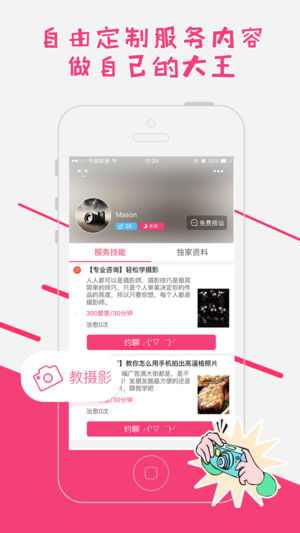简介: 为二次元用户私人订制的技能共享平台!满足你对社交的一切需求! 秀歌声、卖萌扮酷、炫声线、游戏竞技; 娱乐八卦、星座解读、情感治愈、专业咨询⋯⋯ 你想要的技能服务,这里都有! 只要你爱分享,自认为有特技,就可以发布共享自己的服务,就是这么任性! 定制千奇百怪的社交需求,泛二次元用户的必备选择! ------------来自用户的声音----------- 地铁族: “每天上下班地铁上都可以分享自己的零碎时间,跟人聊天交友,实在很充实!” 学生族: “每次上课犯困的时候,就想在蜜糖里找个幽默系的,逗我开心” 追星族: “心情不好的时候,就会打开蜜糖,找一个同样八卦的人…