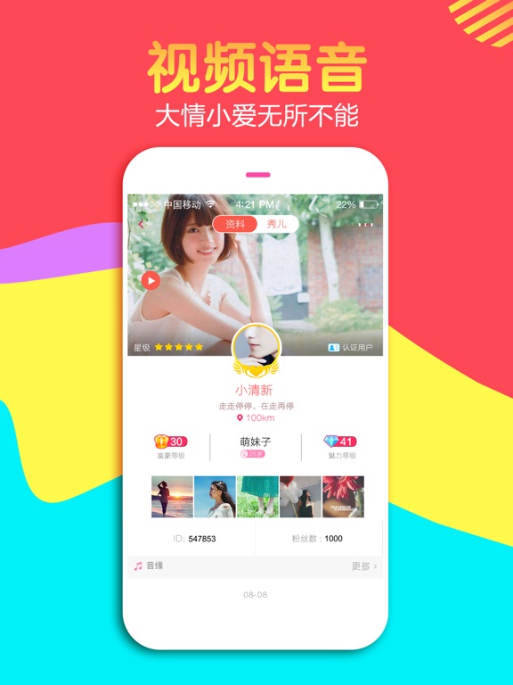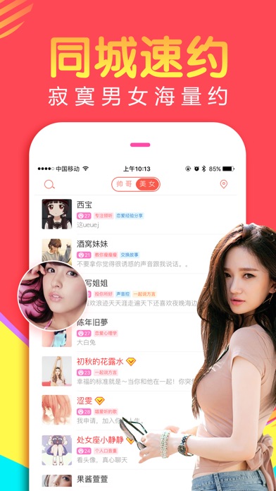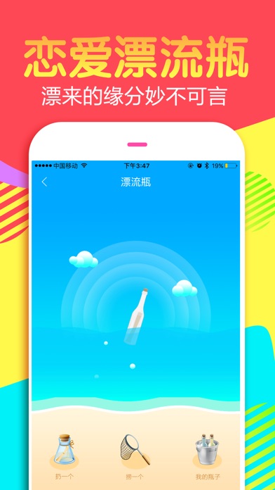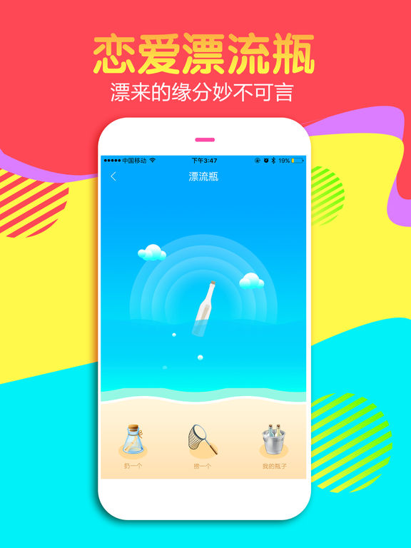 恋爱漂流瓶,真实高效的同城约会交友平台。单身必备的约会神器。 照片视频比对认证,真人视频,附近美女帅哥,一网打尽。 发布邀约,5分钟7人应约,约会交友,从未如此舒心! 约会交友圈最美应用,获91市场、新浪应用、腾讯应用等重磅推荐! 【电话验证】 看照片交友?那是上个世纪的事了。打一个电话,耳听为实! 【同城邀约】 吃饭、电影、K歌、运动、旅行......简单直接、拒绝磨叽,5分钟7人应约,约会交友,从未如此舒心! 【电话私聊】 聊人生理想、心情私密,双方号码隐藏,完美保护隐私。 【征婚】 海量单身美女、优质男士在这里与你相约,大胆的秀出自己,总有一款适合你! 当你一个人过周末,需要有人陪时, 当你想唱歌,却找不到人时, 当你晚上回家,想有个人请你吃饭时, 当你来到陌生的城市,觉得孤单时, 当你⋯⋯ 就打开恋爱漂流瓶! 我们不自诩XX年度最火爆交友软件;也不吹嘘用户超过几千万。 好产品,不用吹,用户自有好口碑! 恋爱漂流瓶——同城交友,单身必备的约会神器! 约会交友,就用恋爱漂流瓶!