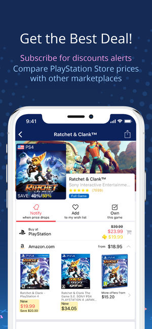 PlayStation games price tracker app with instant price drop notifications! Buy games cheaper or get them for free with PS Deals app - a must have for any gamer! Even better, access all information in one place - add-ons, video reviews, ratings, price stats, cheats, screenshots, what’s inside, releas…