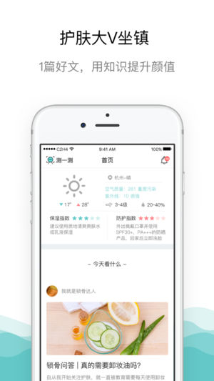 讲真,护肤的水真的很深呐! 别人的种草安利,到了自己的脸上, 很可能分分钟就成了风雨霹雳 ・゜・(ノД`) 而这里有一群人,想对你的脸做一件晴朗的事~ 2年时间,勾搭过N个护肤大V、配方师和皮肤科医生 终于有了现在这个不完美、但很真诚的APP~ ----她能帮你做些什么---- 【拍照测肤】不用买硬件,告别美容院,一次专业的肤质检测,一个手机就可以轻松搞定 【智能分析】从肌龄、肤色、出油、痘痘、黑头、毛孔、光滑度等多个角度,全面分析肤质 【产品推荐】以你的肤质为依据,结合科学的护肤理论,定制个性化的化妆品护肤品方案 【护肤科普】一众护肤大V坐镇,陪你聊成分、谈功效、扒内幕、挑好货,从…