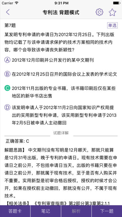 全新收录2016年真题及解析 专利代理人考试题库收录了近年来的专利法、相关法等相关真题, 便于利用碎片时间练习及深入学习, 是参加代理人考试的提分利器 优势特色: 1. 真题优质解析, 解答过程详细, 思路清晰, 全面掌握相关知识点, 做到触类旁通; 2. 紧跟考试大纲,与时俱进, 按照新版大纲修正旧版题库的答案; 3. 实时提供做题数据, 便于时时刻刻了解自己的水平; 4. 提供错题收集及收藏功能, 方便巩固复习; 5. 版本通用, 同时适用于iPhone 和iPad; 6. 所有功能均可离线使用, 随时随地练习, 不受网络限制.