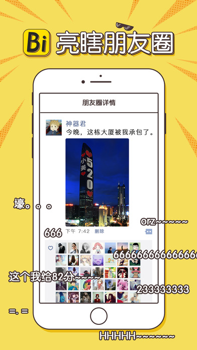 春节期间,我们上线大量拜年祝福视频,让大家过个欢乐年。 【2017最受欢迎应用】各市场快速飙升最快的制图神器。不断刷爆朋友圈。 Bi,就是be interesting。我们app可以一键生成各种令人感兴趣的趣图! 我们是全网最火的表白神器,炫酷P图神器,斗图神器。在这里可以一键生成各种有趣的图片。包括GIF和各种小视频。 【拜年神器】春节期间,我们上线各种拜年视频,让你创意拜年,轻松拜年! 【表白神器】这里有各种表白神图,包括浪漫楼宇表白,GIF动图和视频表白。 【恶搞神器】你可以制作非常多有趣的恶搞图片,聊天交友必备! 【炫富神器】海量炫富素材应有尽有,让你朋友圈瞬间被点赞淹没! 【炫酷P图】各种画中画,天天P图,浪漫相框,九宫格动图等等,众多P图素材等你来玩。 【斗图神器】我们有大量斗图表情一键生成,斗图聊天不可或缺的必备图片制作神器。 我们是唯一一个有视频和GIF的制图神器,表白神器,斗图神器。别再犹豫,赶紧下载。 【联系我们】 官网:http://www.zbisq.com/ 邮箱:1534725117@qq.com 公众号:bisp01 【本APP版权属于广州华多网络科技有限公司】