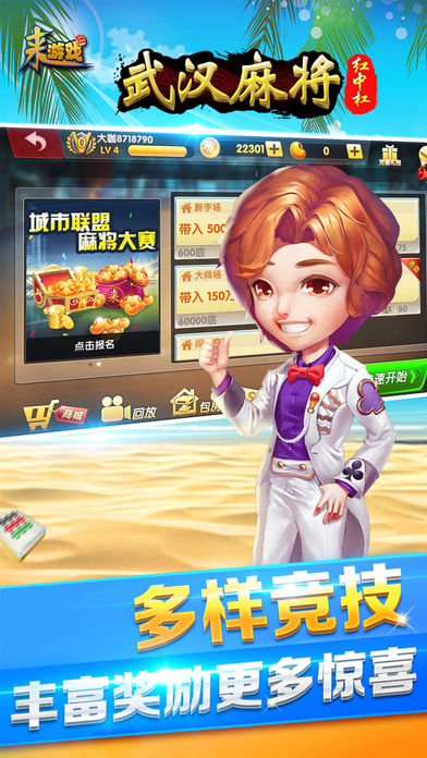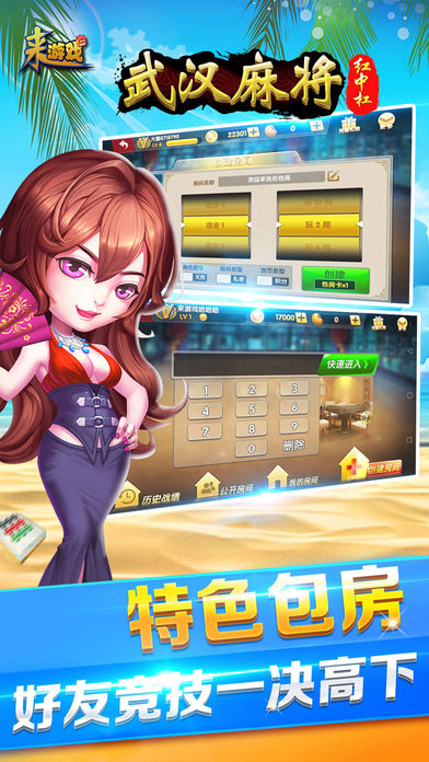 来游戏官方全新力作,引领棋牌手游新时代! =====游戏简介===== 武汉麻将-来游戏,内含武汉麻将、红中皮子杠、卡五星、二人麻将、血流成河、大众麻将,牛牛、比大小。采用武汉地区流行的麻将规则,灵活的玩法配合来游戏的3D界面,让人欲罢不能。 =====游戏特色===== 【包房】新增特色包房,灵活创建房间,邀请好友竞技一决高下 【回放】边录像边玩牌,牌局回放功能让你在回顾牌局的时候还能炫耀牌技 【比赛】更多赛事活动搭配精美礼品,用惊喜回馈用户 【角色】结合手游经典RPG,带着你的MM上牌桌,享受暴击快感 【宝箱】多样钥匙开启多种宝箱,欢乐多多惊喜不断 ====联系我们==== 微信公众号:laiyouxi >>来游戏——Unity3D引擎打造的休闲竞技类游戏平台,给您身临其境的3D游戏体验<<