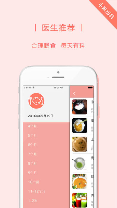 半米出品 宝宝食谱 医生推荐:营养均衡,简单操作! 为处在4到36个月的宝宝提供每日菜品,健康营养的饮食搭配,让宝宝健康成长没烦恼! 半米孕期app们陪伴您和宝宝的每时每刻~