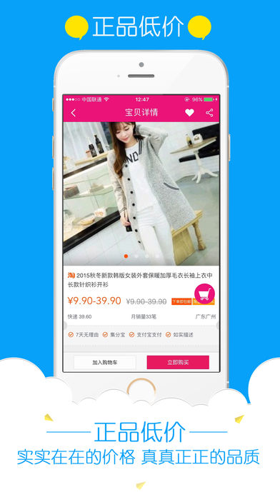 爱淘九块九包邮,是您选择高性价比商品的不二选择!特价商品精选,购物达人的选择。 所有商品均来自专业小编为您精心挑选的全网最超值宝贝,低至九块九再包邮,收录商品均经过人工审核。服装,居家,文体,箱包配饰,应用尽有。 选择我们的理由: 【爱淘九块九】精选特惠商,天天双十一!前无所有的白菜价,引导您成为购物达人! 【折扣强力】小编精心挑选,折上再折,网购省钱神器 【安全可靠】使用用户已有淘宝账号登录,支付,安全有保障 ---------------------------------------- 【Pro专享】更优质的人工选品,让您购物更加放心