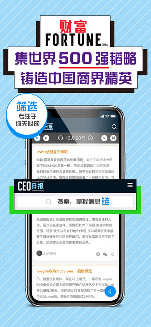 『CEO日报』是《财富》(中文版)旗下产品,旨在为中国经理人和商务精英提供第一手财经快讯,包括全球大公司新闻,风险投资精选,私募股权交易等每日重大财经新闻。
