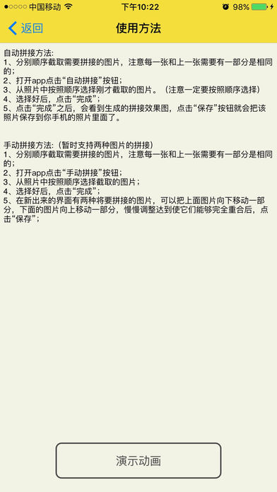 这是一个超级好用的拼接工具,你能够使用自动或者手动的方式来拼接连续的截图,并且处理速度超级快。这个应用能够把多张连续的截图拼接成一张长图。如果你有什么建议或者意见,请与我联系。 email1:johnnyisacoder@gmail.com email2:aqiejiao@sina.com
