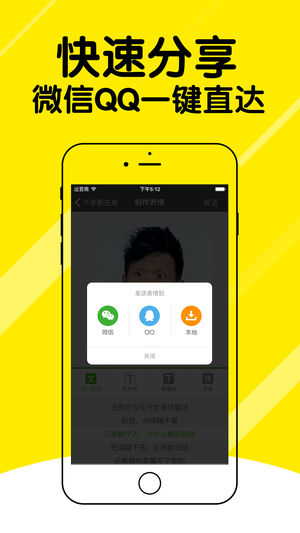 【产品简介】 想在斗图界一展拳脚吗? 想在群聊中脱颖而出吗? 下载斗图APP,满足你的愿望 斗图是一款完全免费的微信、微博、QQ动态图聊天表情APP,提供海量表情素材,轻松制作属于自己的专属表情,聊天嗨翻天。聊天斗图必备工具,支持在微信、QQ、微博中发送各种表情。开启表情交流的全新聊天模式,体验最欢乐的聊天辅助工具,适用于QQ和微信聊天,集合了萌、傻、酷、拽等多位表情帝的最新表情包内容,秒杀小伙伴们的土掉渣表情。 【产品特点】 海量素材:金馆长、张学友、教皇各大表情帝陪你一起立足斗图界 内涵文案:“难道长得好看也是一种罪”“美女你男朋友掉了”“和你对话是对我的侮辱”…… 个性制作:轻松上传…