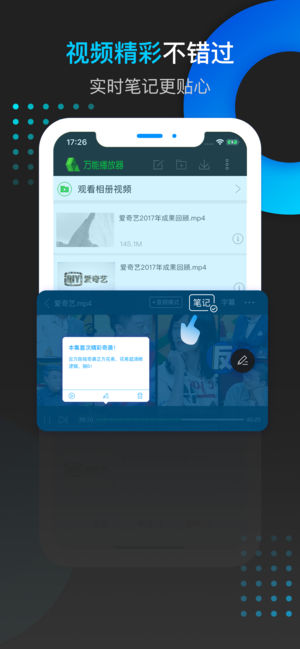 爱奇艺万能播放器,是一款专为本地视频播放而生、支持多种视频格式的高清万能视频播放器。你要做的就是把你的大片传进手机。动动手指,看本地高清视频,就从爱奇艺万能播放器开始! 用爱奇艺万能播放器,你可以 ※ 观看不同格式视频----别人抱怨的时候,你在享受 ※ 无网观看----别人卡顿的时候,你在享受 ※ 浏览系统相册视频----别人苦恼的时候,你在享受 更多功能,等待你的发现! 联系我们 使用过程中您有问题和建议,可在“更多(页面右上角)-问题反馈”中提出,也可加入下面QQ群反馈 官方QQ群:862483736