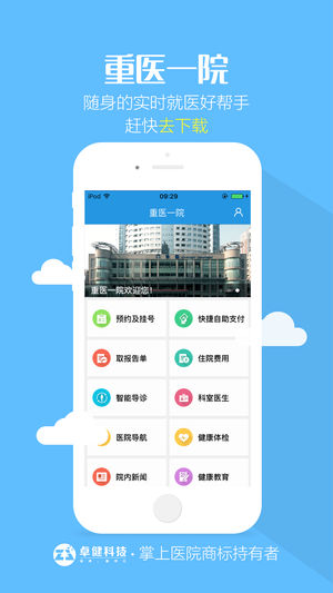 “重医一院”是由重庆医科大学附属第一医院研发的一款方便用户就医的智能手机应用。它能使用户方便挂号,无需请假排长队,查找医院方便简单,报告单查询随时看,健康状况一手掌握。 主要功能: 1、智能导诊:模拟医生问诊流程,通过自检初步评估自身病情; 2、实时挂号:实时更新医院号源情况,手机挂号省时又高效; 3、预约挂号:选择就诊卡,掌上预约,短信凭证就诊; 4、医院导航:院外线路导航、院内科室分布、周边商户一网打尽; 此外还有健康资讯、医院动态等实用功能,为您的健康保驾护航,提供专业便捷的移动医疗信息服务。 【声明】 重医一院是重庆医科大学附属第一医院与杭州卓健信息科技有限公司联合研发