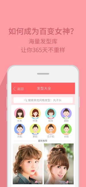 百款潮流发型设计与脸型搭配,为你私人订制,魅力从发型开始绽放! 【发型搭配脸型】发型如何搭配脸型?精准发型及风格测试帮你快速匹配最适合的完美发式,美翻你的朋友圈! 【编发盘发教程】看腻了披发马尾齐刘海?自己在家也可以照着教程轻松变成你想要的魅力造型! 【海量发型库】想做百变女神?紧跟潮流的丰富造型库,满足你个性时尚的选择!让你365天不重样,发型心情天天换。 【潮流发型推荐】丸子头蛋卷头梨花头波波头花苞头韩式包子头,鱼骨辫鱼尾辫蜈蚣辫蝎子辫翻花辫,每天为你推荐新发型! 【百变发型分类】风格、长度、脸型、样式分类齐全,做最懂你的发型设计工具。 快快下载体验属于您的私人发型设计搭配神器,从头开…